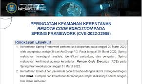 Peringatan Keamanan Kerentanan Remote Code Execution pada Spring Framework (CVE-2022-22965)
